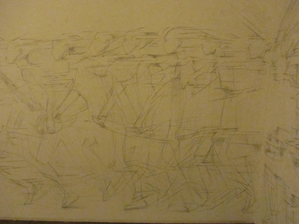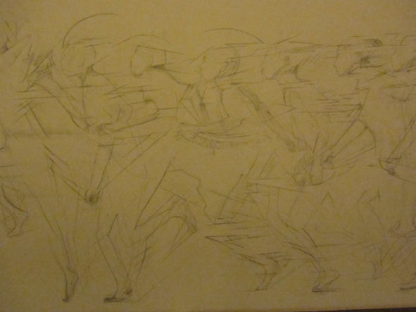 この絵の大きなテーマである時間の効果というのは実は単純で、鑑賞者は右から左へと走り出す絵を追いかけていきます。